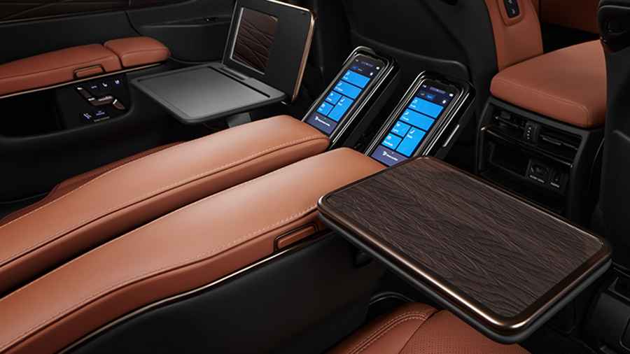 All New Vellfire HEV menyediakan meja multifungsi untuk menunjang produktivitas Anda, lengkap dengan remote control mirip smartphone yang dapat dilepas.